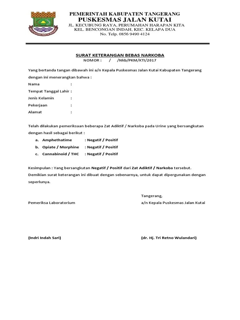 Contoh surat keterangan bebas narkoba contoh surat keterangan bebas narkoba dari rumah sakit atau dari laboratorium kompeten memang sangat di butuhkan untuk mendukung kegiatan tertentu. Surat keterangan ini bisa dibilang cukup sulit untuk didapatkan karena membutuhkan proses yang lumayan merepotkan. Demikian ulasan yang berjudul download surat keterangan bebas narkoba dari sekolah doc dan pdf. 20 okt, 2021 posting komentar selain buat masuk kerja, surat keterangan bebas narkoba (skbn) juga kerap dijadikan sebagai syarat masuk ke sekolah atau perguruan tinggi. 18.12.2019 · surat keterangan bebas narkoba merupakan sebuah persyaratan yang umumnya dibutuhkan saat mengajukan sesuatu hal ke pihak instansi. Contoh surat keterangan bebas narkoba. Contoh surat pernyataan bebas narkoba untuk daftar cpns kemenag harian madrasah. Surat keterangan bebas narkoba ini bisa didapatkan dari instansi seperti rumah sakit, sekolah atau kantor polisi. Selain itu kita juga bisa membuat surat pernyataan pribadi … Bagi kamu yang juga mencari contoh surat keterangan, surat pernyataan, surat izin, administrasi sekolah, dan surat menyurat lainnya. 9 surat pernyataan bermaterai rp 6 000 bebas narkoba contoh lampiran 2 10 surat pernyataan pdf document sekolah tinggi multi media mmtc yogyakarta contoh surat pernyataan pembayaran hutang dalam bahasa inggris 29.08.2021 · surat keterangan ini adalah surat resmi yang diterbitkan sekolah dan ditandatangani kepala sekolah.